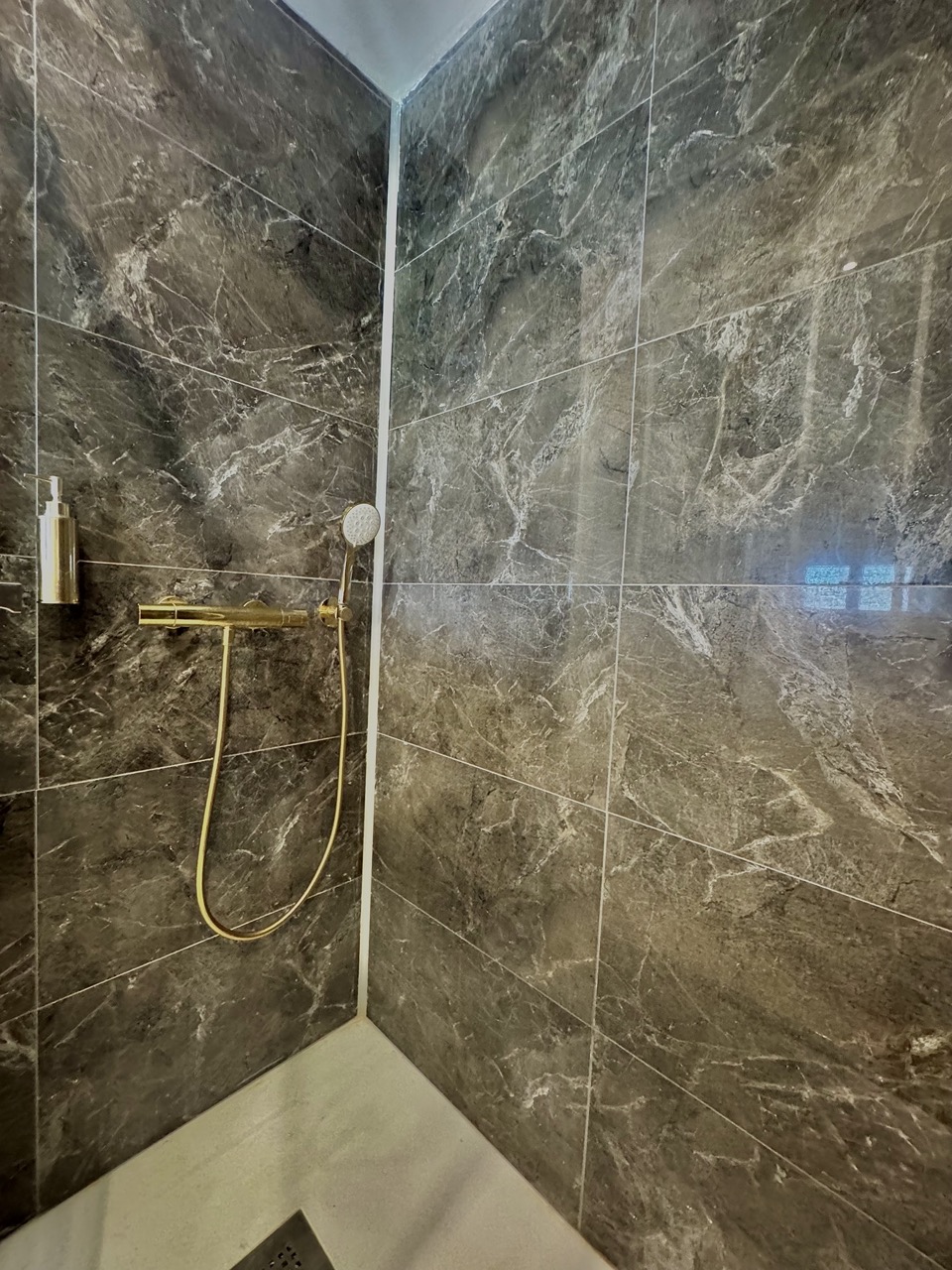 Les salles de bain suivent le même concept : mobilier avec rangement, douche de 120 x 80 cm et WC suspendu.