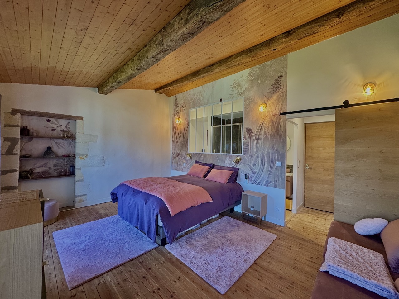 La suite Améthyste est la plus spacieuse de nos hébergements, avec une superficie de 27 m².